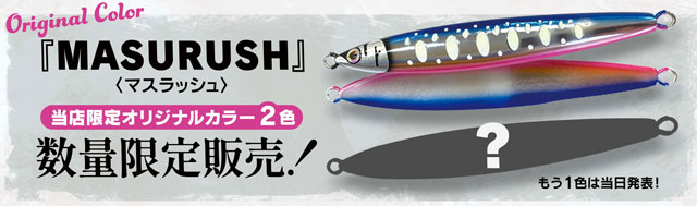 昨年サクラマスジギングで爆発的な人気となった、クマタニトラストのジグ『マスラッシュ』!今シーズンに向けて新八戸店限定オリジナルカラーを2色作って頂きました!当日数量限定販売いたします!