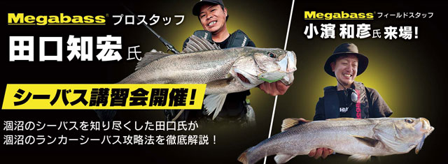 公益財団法人茨城県開発公社「いこいの村涸沼」に全面ご協力を頂いての一大イベント!メガバスプロスタッフ田口知宏氏&メガバスフィールドスタッフ小濱和彦氏のコンビが、涸沼のランカーシーバス攻略法を徹底解説!