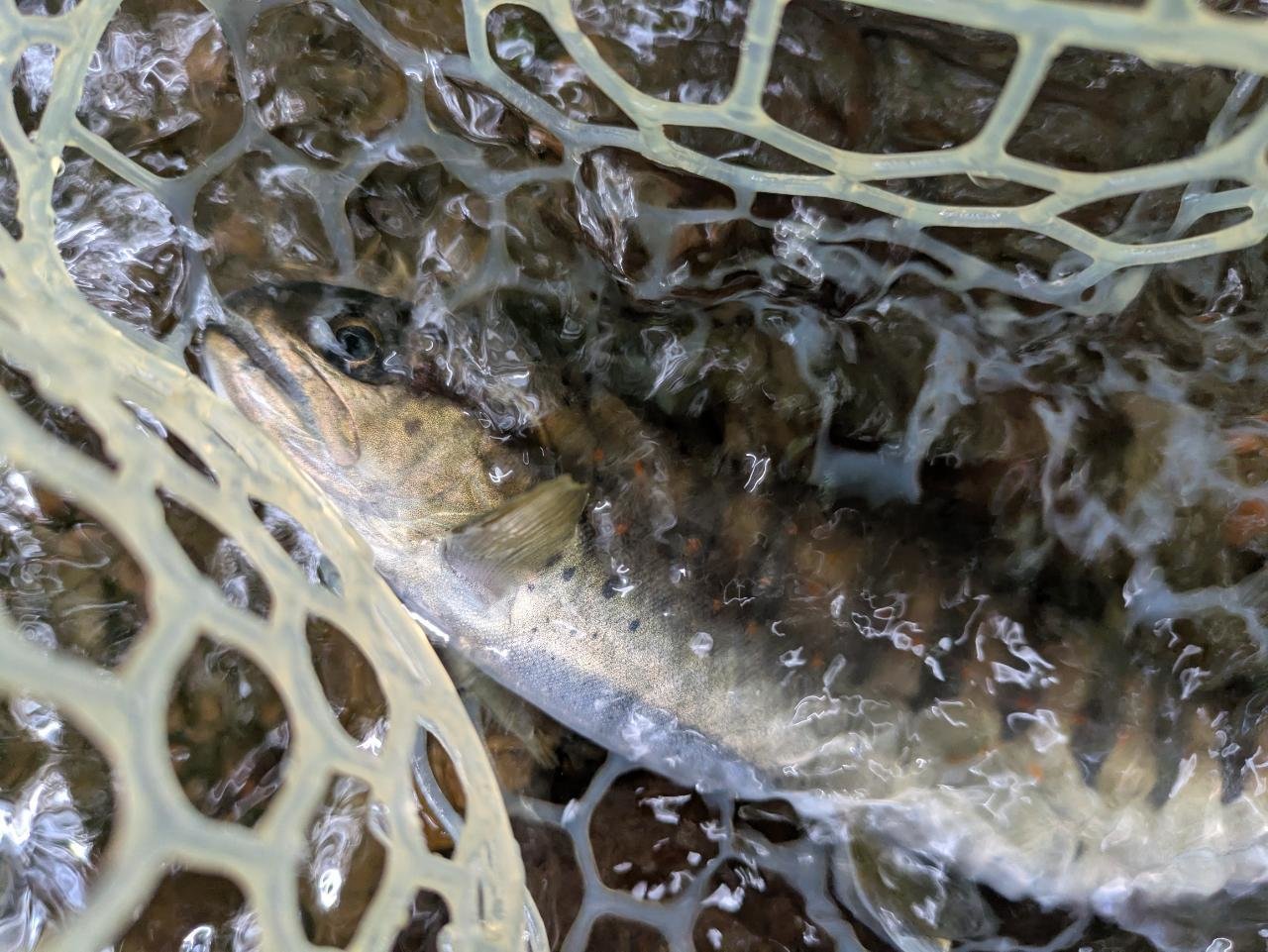 小渓流の為、狭い「落ち込み」や「瀬」を攻めるテクニカルな釣りですので、