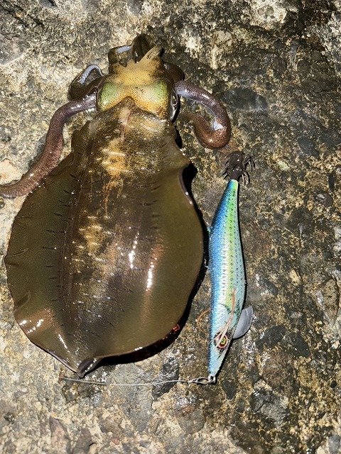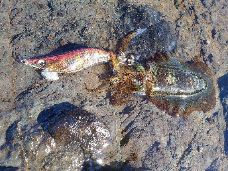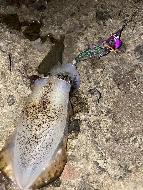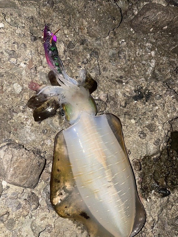 今年初のアオリイカ釣行!今回は、渡船で男鹿磯へ。朝5時出船まだ真っ暗でしたが、朝一からポツリポツリと釣れてくれました。例年より小型のイカが多くエギのサイズも3号より2.5号の反応が良かった感じでした。地元のお客さんは朝一からイカラッシュ!いい感じで釣ってましたね!羨ましい!今年は、テップランなどでも釣果出てますので今後も楽しめそうですよ。