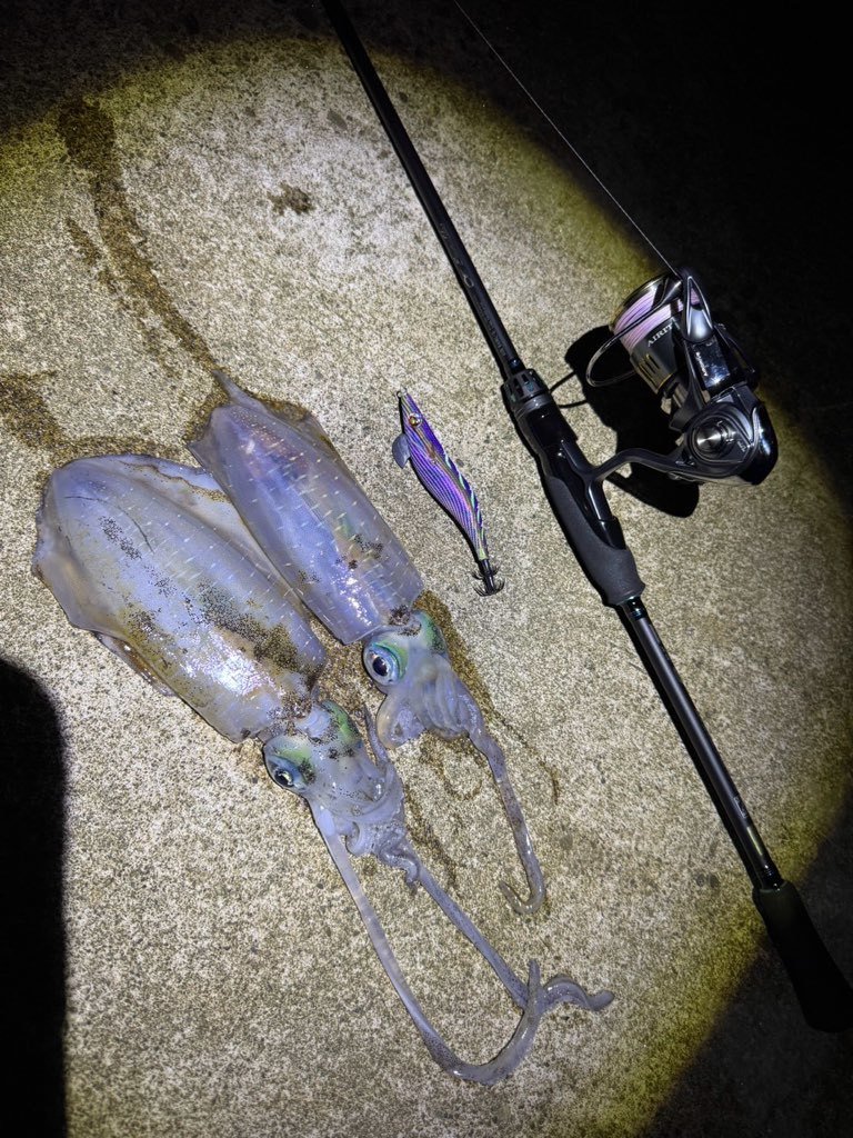 お客様よりアオリイカの釣果報告をいただきました!今期は釣果が渋いと聞かれる中で早朝の2時間で5杯ゲット!流石ですね!!おめでとう御座います!