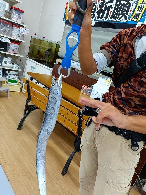 【横須賀うみかぜ公園】横岸壁最新釣果情報です。お客さまのNさまより釣果のお持込みを頂きました。専用のワームで探るとやや深めのレンジにて本命をキャッチ!更にもう1匹がヒットしましたがこちらは途中で無念のバラシ・・それでもタチウオの活性は良くいよいよ本格シーズンに突入か!といった雰囲気でした♪Nさま、本日はタチウオキャッチおめでとうございます。これからもバリバリと釣ってきてくださいね。次回の釣果のお持込みもお待ちしておりま~す^^/