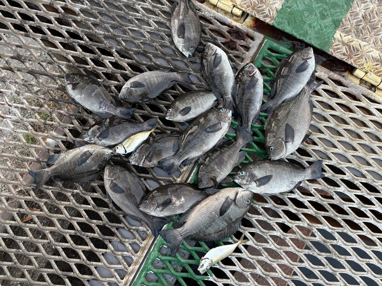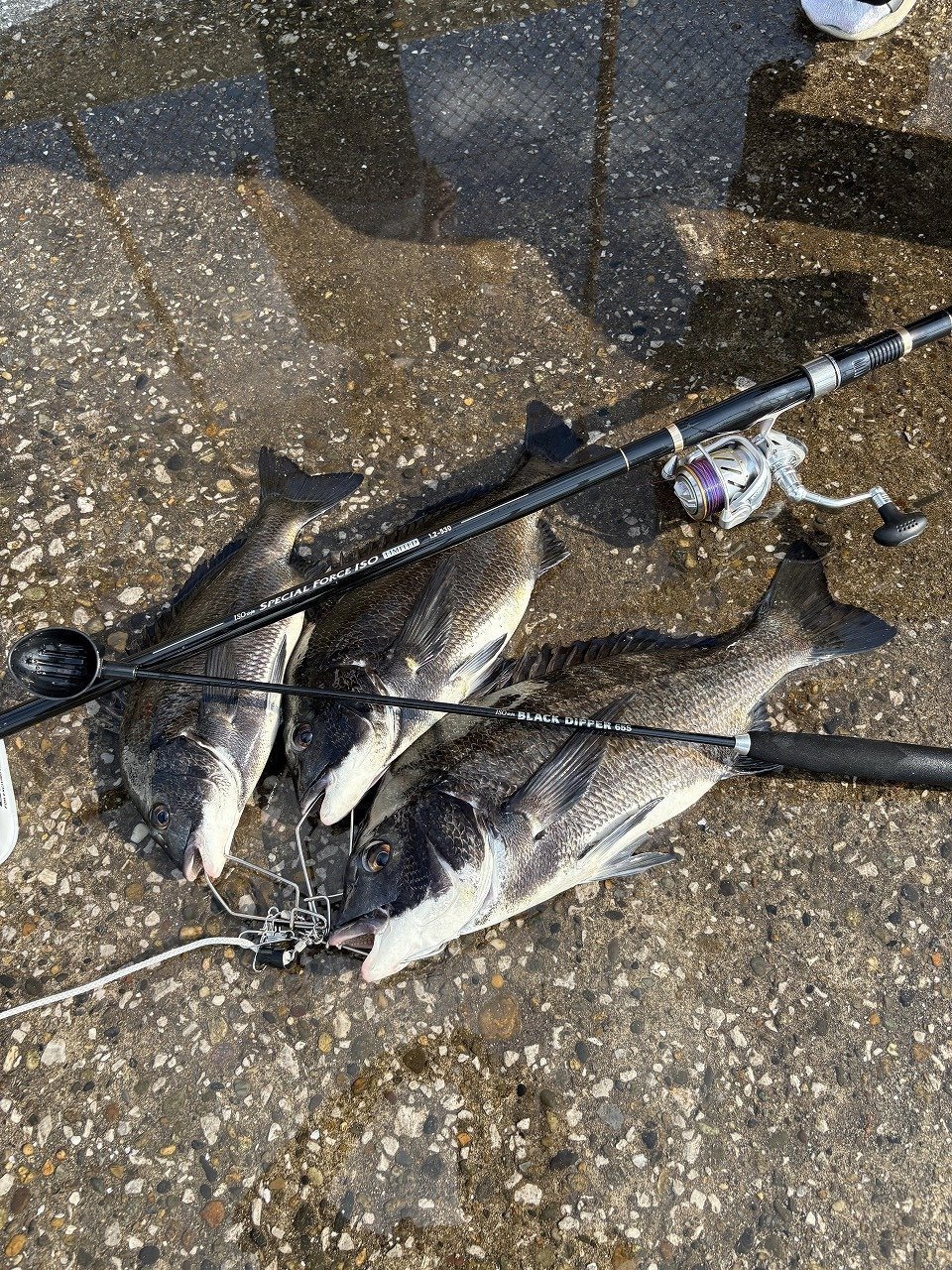 最終的には4名で、25~45㎝(アベレージ約40㎝)の良型クロダイが6枚・50㎝超えの大型ボラが2本と、好釣果に恵まれました。その他、バラシ・ハリス切れ・アタリの見逃しも多数あり、これからのハイシーズンに向けて大いに期待できそうです。