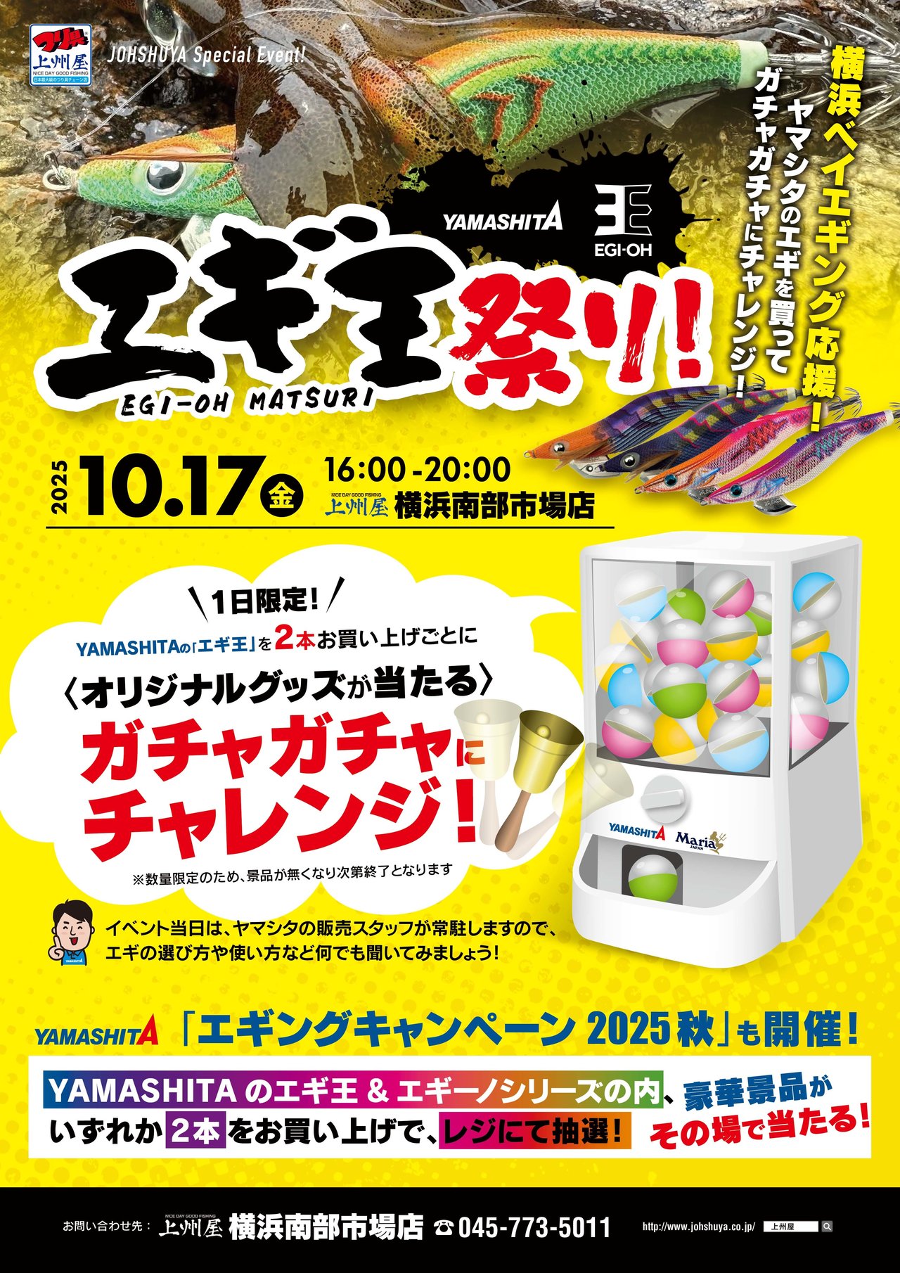 10/17日はヤマリアエギ王祭りと題しまして店頭にてガラポンイベントを行います!詳しくはHPをご確認下さい!