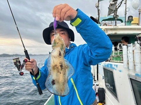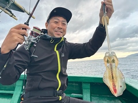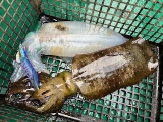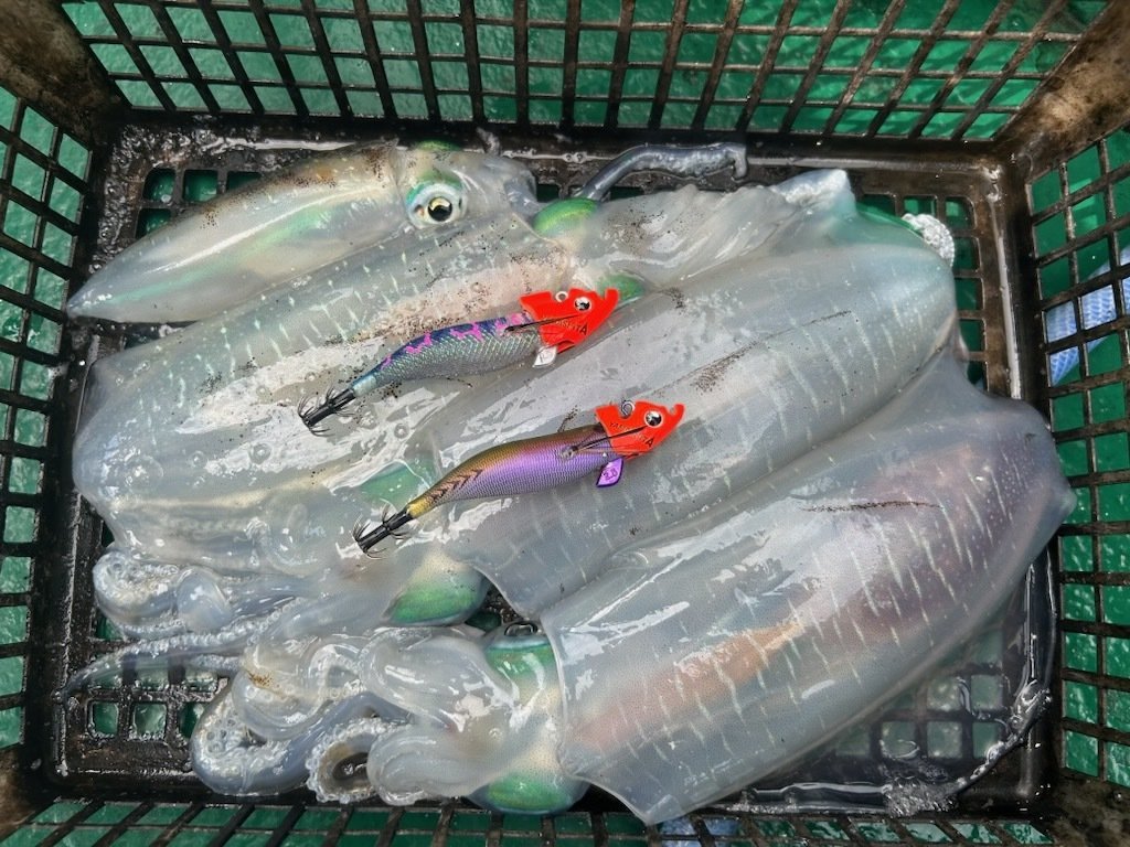 前半戦は前夜のうねりが残り、かつ風と潮が合わずで釣りづらい状況でしたがポツポツと良型が取り込まれました。前回の釣行からあっという間にサイズUP!掛かった瞬間の重量感とジェット噴射はたまりません!その後は徐々に風がおさまりなかだるみに。。。なかなか数は延ばせませんでしたが終了間際に時合いが訪れプチラッシュとなり良型があがりました。同行していただいたお客様も6杯~8杯とコンスタントにキャッチ!まだまだ小型も居ますが20㎝前後が普通に釣れます!自身の当日の最大は胴長22㎝でした。徐々にうねりや風が出て来る季節ですのでエギ餌木のウエイトを上手く調整することが重要です。追加シンカーで調整できるように用意していきましょう。