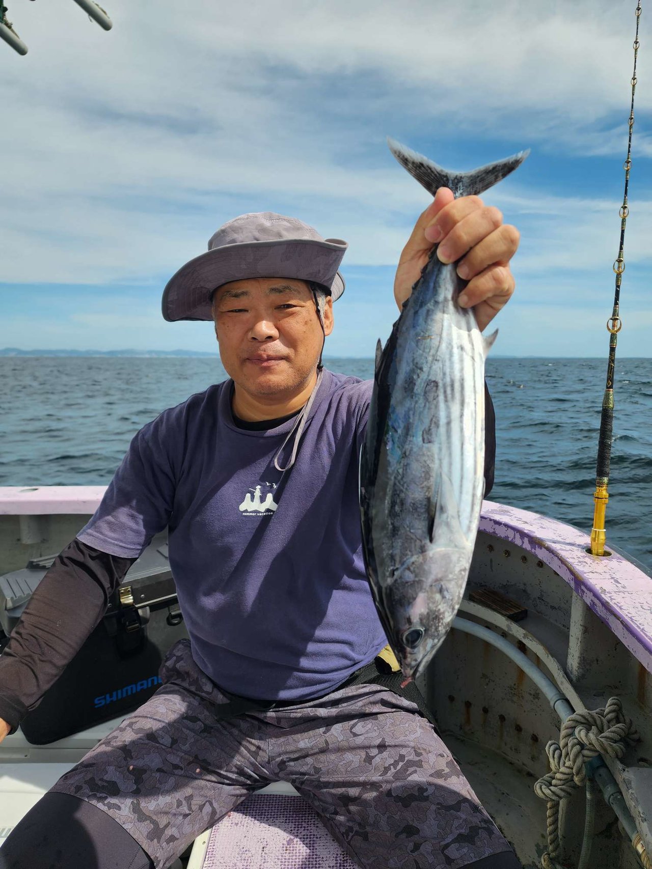 カツオの反応もあるがシイラやメジ(全て放流)が先に喰ってしまってなかなかカツオのが釣れませんでしてが、なんとか小型のカツオ1匹釣る事が出来ました。