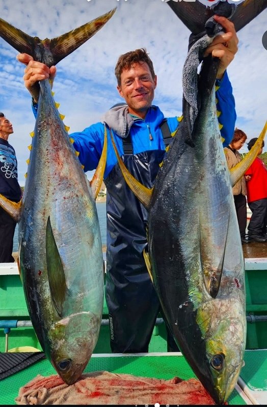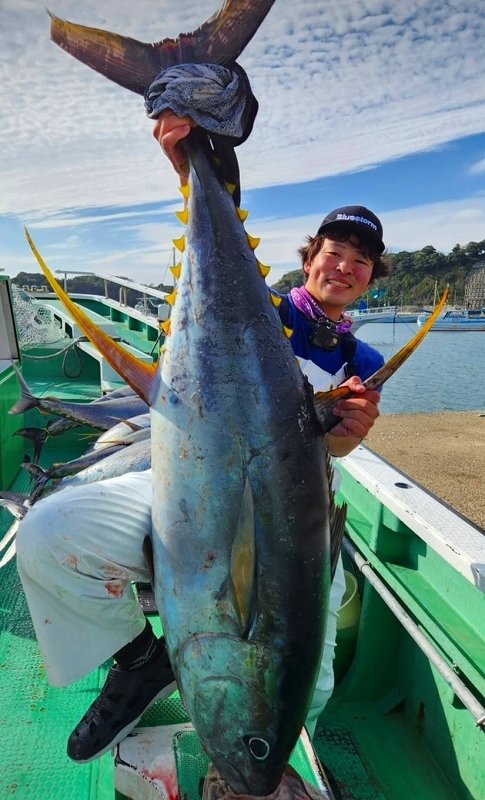 またまた釣れました~♪店長息子よりキハダゲットの連絡が。前回の42kgに続き44Kgをキャッチ。今回も松輪の「一義丸」さんにお世話になりました^^/前回の釣行で何となく流れも分かり、やり取りにもゆとりが有ったそうです。今回も常連さまのアドバイス、船長のタグリなど、皆様のおかげで美味しいマグロを手に入れられました♪当日は60kgオーバーや3本をキャッチされる方も居られまだまだ相模湾はアツい状況が続いております!只今自己記録更新のチャンスですので是非お出かけくださいませ。