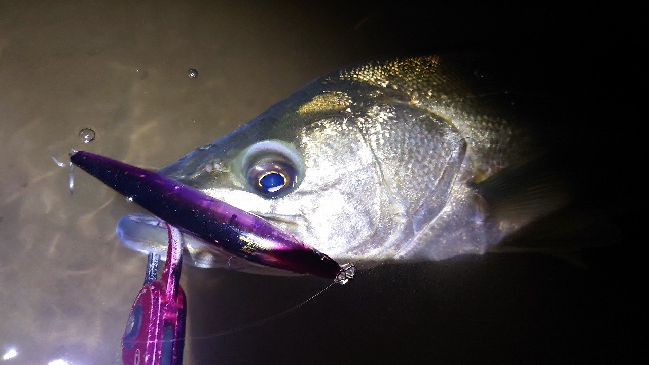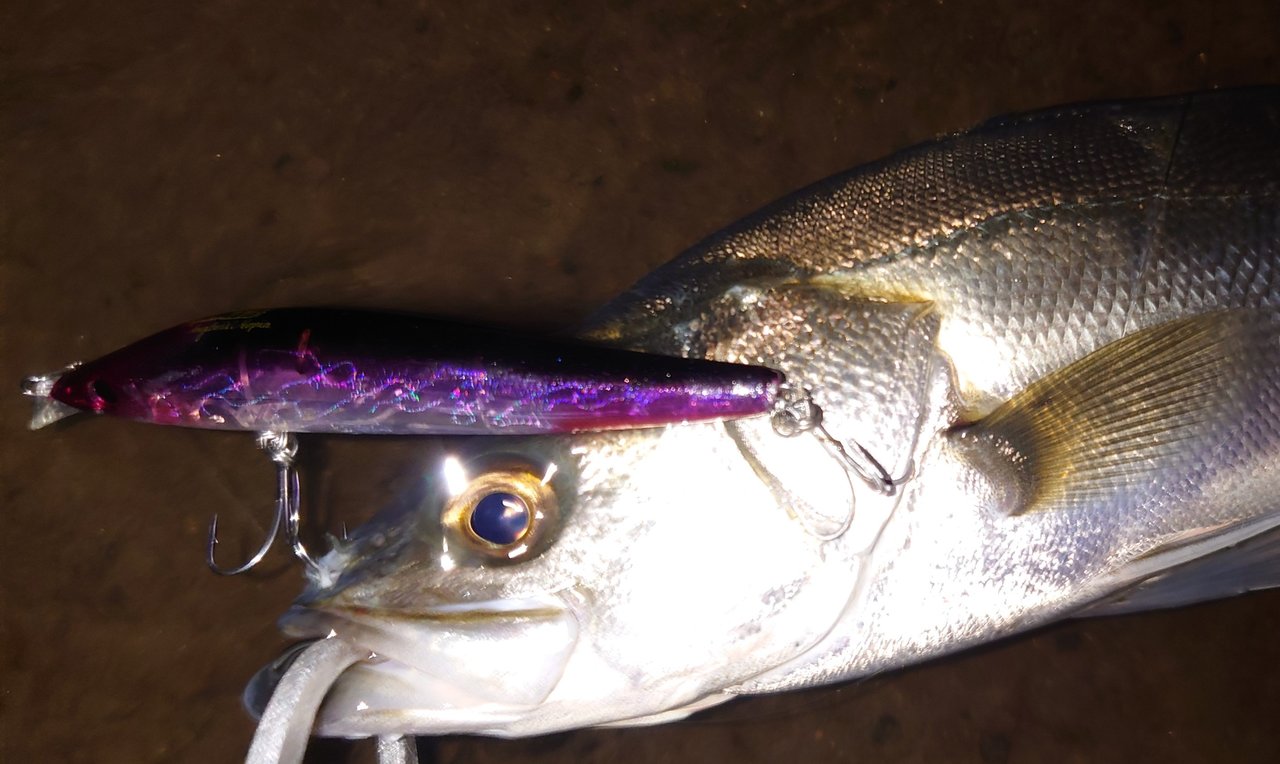 流れが緩く反応も全く無く、最後にVJを投げる前に違うアクションで一投だけと思ったところヒット!61cmでしたが粘って釣れた嬉しい魚でした。