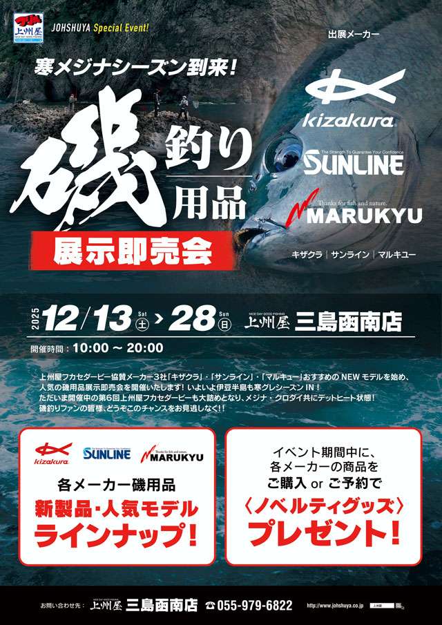 サーフファン必見!2023年12月は上州屋藤枝店にて“ウィークリー”サーフフェスタ開催!12月の毎週日曜日、各メーカーの人気アングラー達が週替わりで来店&店頭イベント開催します!