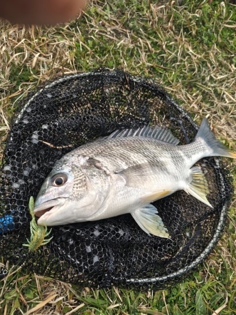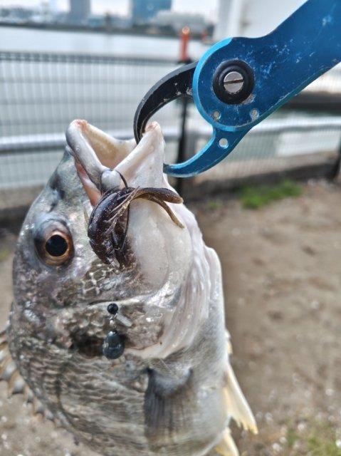 最初のポイントは大橋の橋脚から!すると2投目で明確なアタリがありヒット!!早いアタリでしかも明確なアタリだったので「これは!爆釣では!?」と期待してしまうキャッチとなりました!