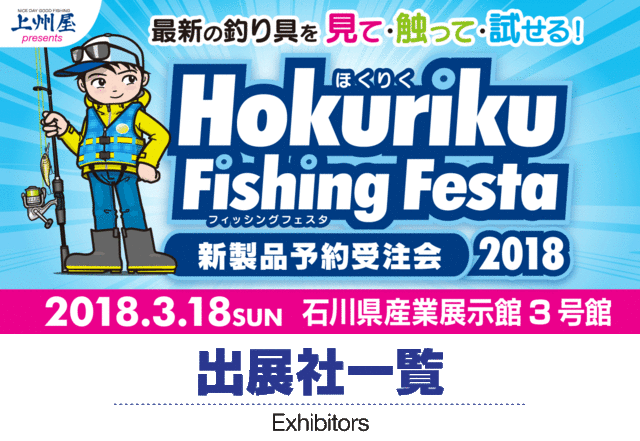 ほくりくフィッシングフェスタ新製品予約受注会2018出展社一覧〔マ行/ヤ行/ラ行/ワ行〕50音順