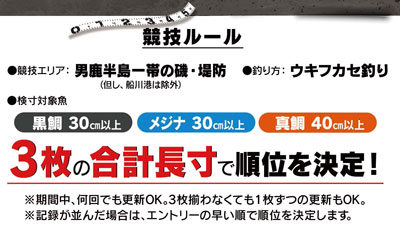 ◆検量対象:黒鯛(30cm以上)・メジナ(30cm以上)・真鯛(40cm以上)