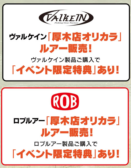 【厚木店】VALKEIN×ROBエリアトラウトカーニバル開催!赤羽根さん、しもきんさん、鶴貝さん来店!