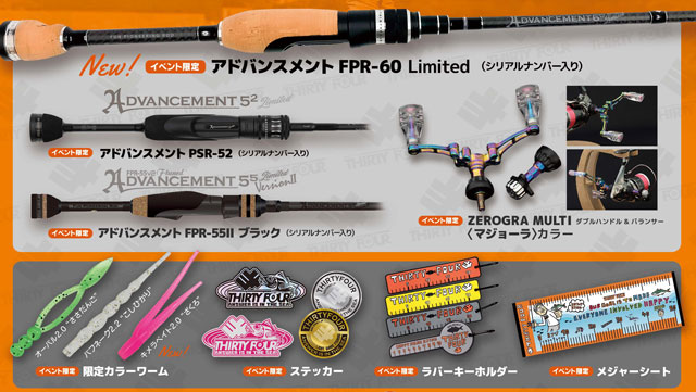 イベント特別企画として「限定ロッド」や「ダブルハンドル&バランサー」「限定カラーワーム」「ステッカー」「ラバーキーホルダー」「メジャーシート」等々を数量限定販売!