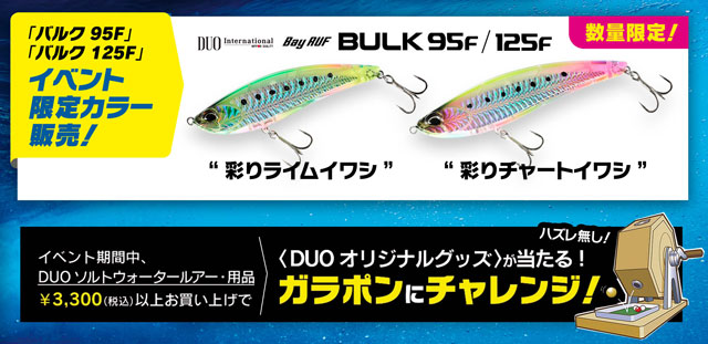 当日はBULK95F/125Fのイベント限定カラー「彩りライムイワシ」「彩りチャートイワシ」を数量限定販売!