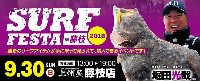 2018年9月30日(13:00~19:00、上州屋藤枝店に地元静岡をはじめ人気ルアーメーカー8社のプロスタッフが大集合!“サーフフェスタ2018in藤枝”を開催致します!