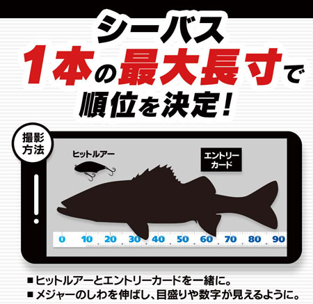 ランカーシーバスの聖地“涸沼”にふさわしくシーバス1本の最大長寸で順位を決定!当日は参加者向けのシーバス講習会や、人気メーカーメガバスブースにて新製品「ハダラトラップ70」の販売も実施予定です。