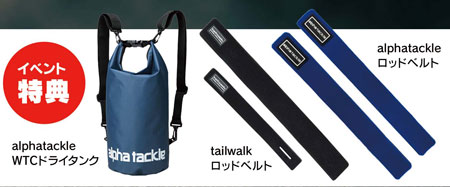 今回イベントにてアルファタックル&テイルウォークの対象ロッド、対象リールをお買い上げまたはご予約のお客様に、商品に応じてオリジナルグッズプレゼント