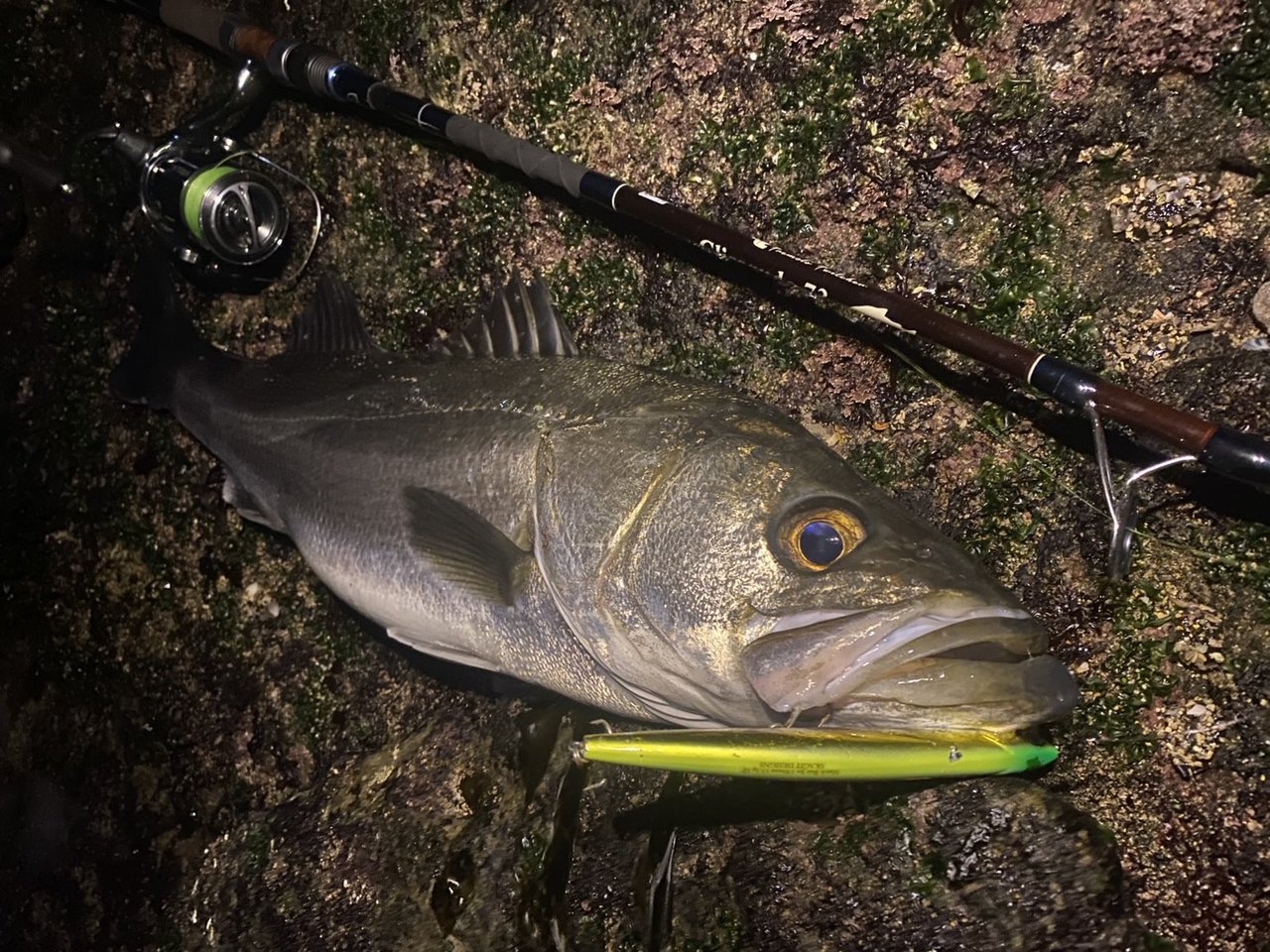 その前の釣行では磯メバルを狙いにボウズだったので、何としても釣りたい!とキャストを続けてシーバスとソゲがヒット!友人さんもシーバスとタチウオが釣れて2人で良い釣れて良かったそうです♪