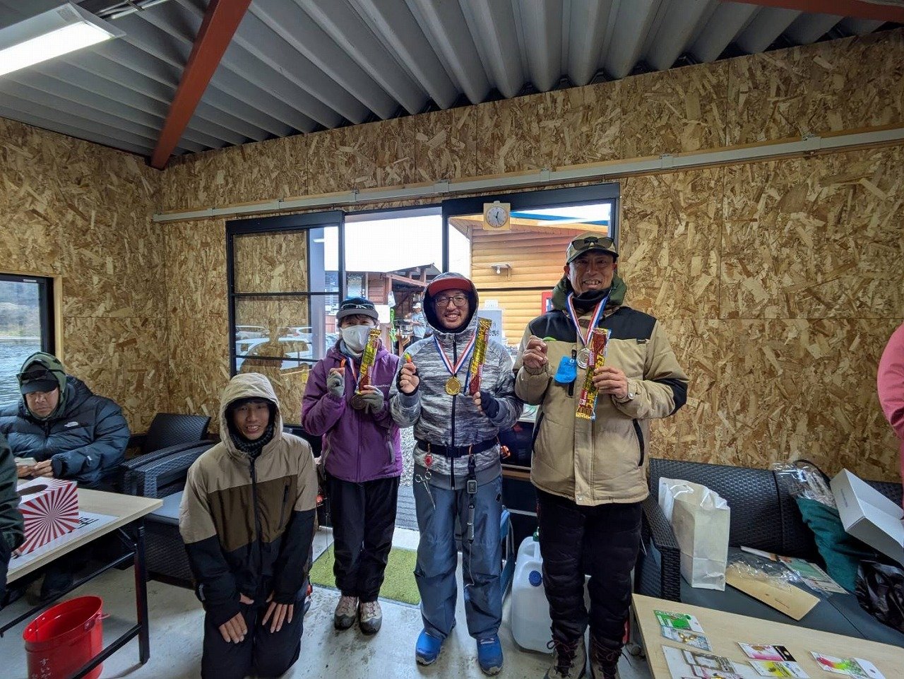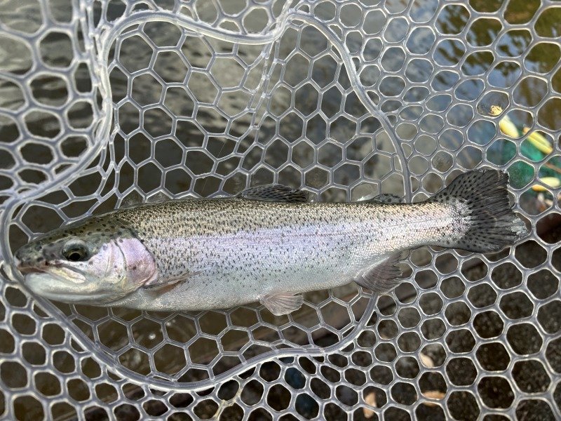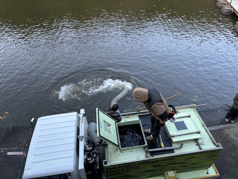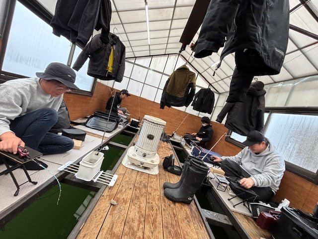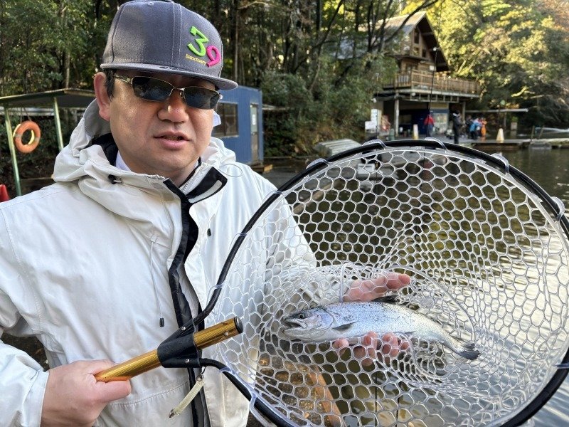 途中、放流タイムもありましたが、我々のポジションに恩恵無く、11時前にはカフェでランチタイムに突入です。小一時間程、暖かい部屋でくつろいで、12時前には現場へ戻ります。午前券の方が丁度帰られ、お客様は思いのポイントが空いたので移動して行かれます。