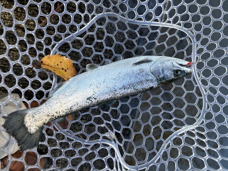 そして全く釣れなくなります・・全体的に沈黙モード。あれこれとやってみましたがバイトが遠い・・お客様はというと、お得意の重い目のスプーンを遠投して、ボトム中心にグリグリ巻いて、ポロポロと釣っておられます。