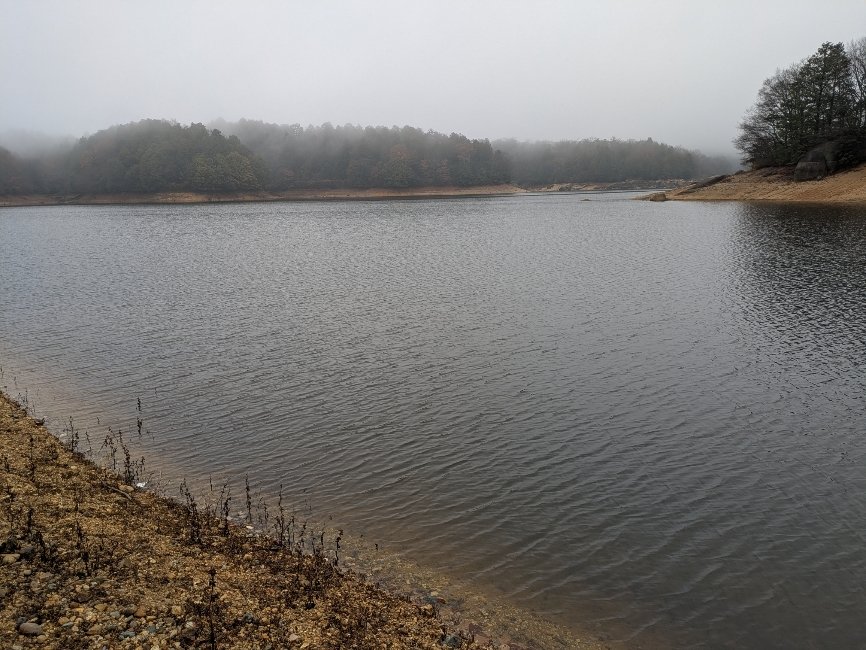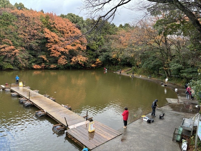 雨が止んだタイミングの10時過ぎに現地到着、昨シーズンより減水しており足場も良く釣りやすい感じ(しかし手前の駐車場の前で工事をしている様子、当日は週末?雨?で工事はしていなかったが)その場所を避けて邪魔にならないように釣座を決める。