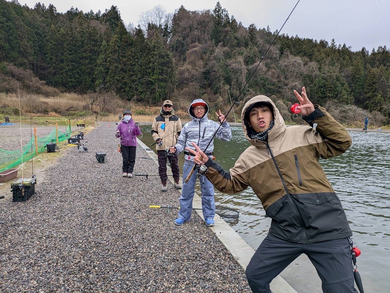 スタッフ高橋で~す!お客様と梶賀へ磯釣りに行く予定ですが、波・風ともに強く断念し、いなべのサンクチュアリさんへと行き先を変更。エリアトラウトで癒されよう・・道中結構な雨が降っていますが、8時には止むとのこと・・