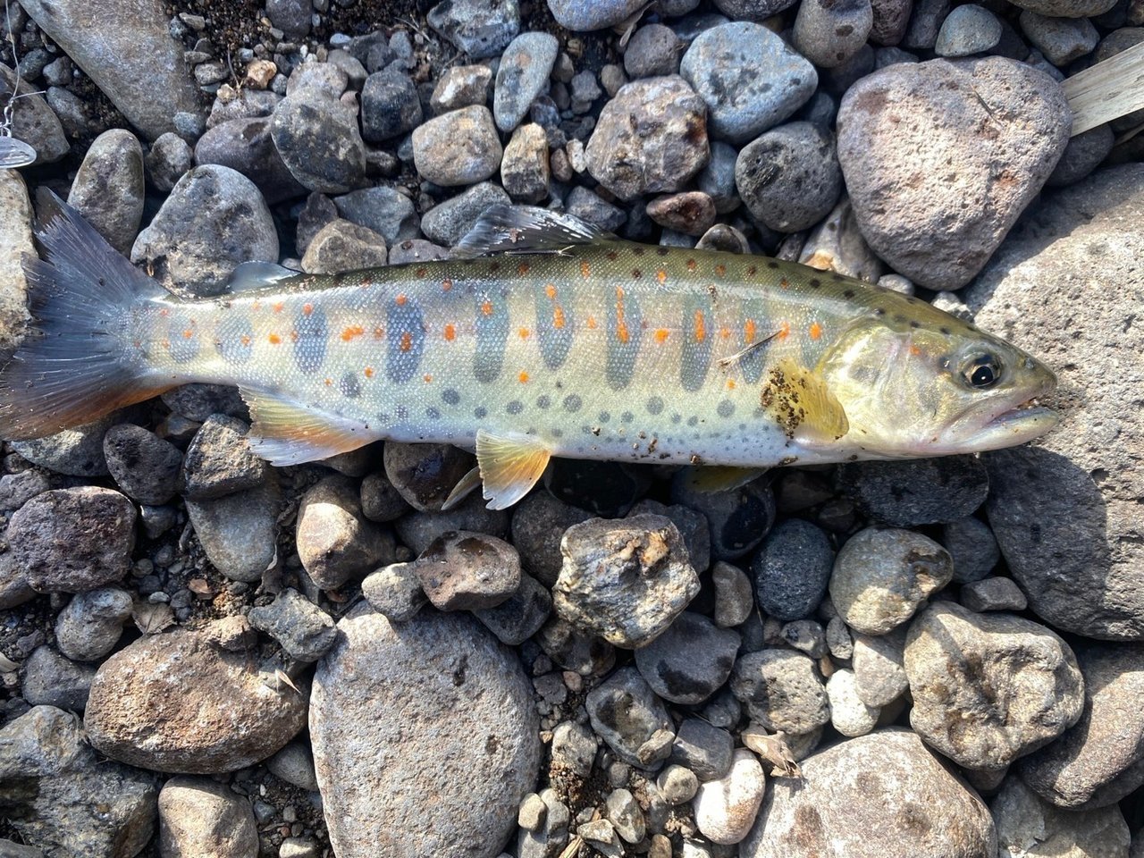 アシの隙間にアマゴが隠れて背びれを出して動かない個体がいたそうです。