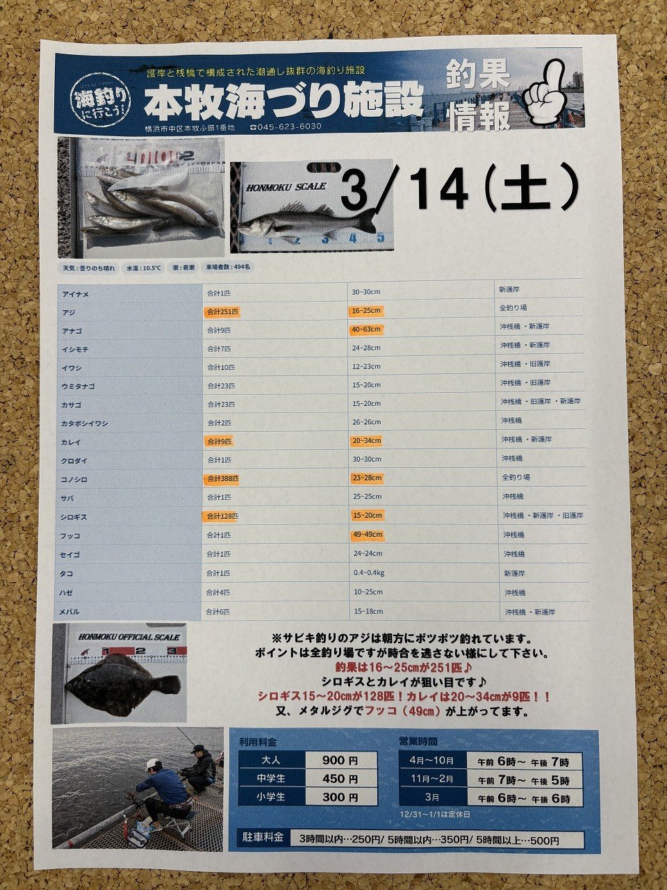 只今、本牧海釣り施設では豊富な魚種が釣れています。