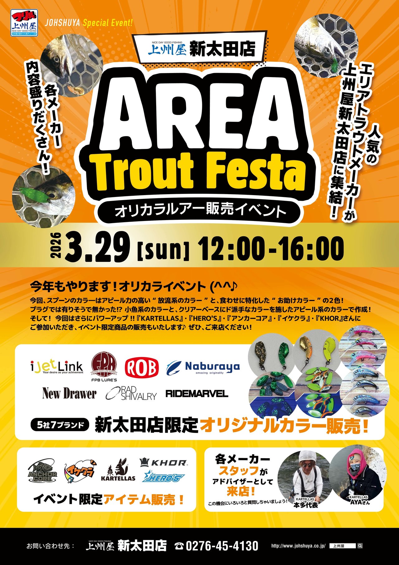 2026.3.29開催のエリアフェスタで販売するオリカラルアーの試し釣り♪