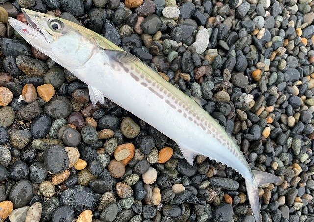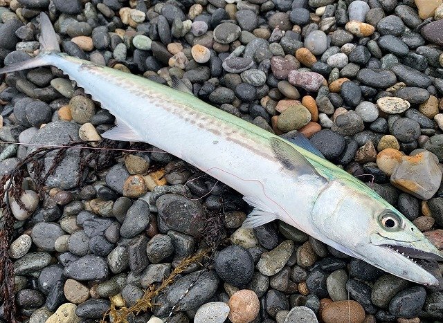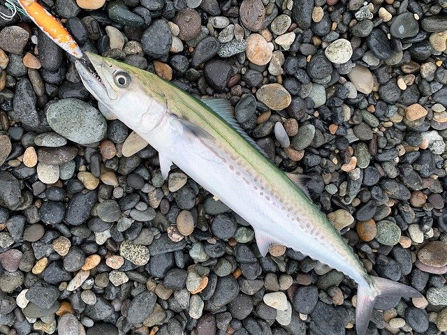 片山津サーフにショアジギングに行ってきました。西風強風で釣りにくい状況で、午前中は不発でしたが、午後からの時合でサゴシが7匹、釣れました。ジグは40g、亜鉛素材、スロー系などフォールスピードが遅い物に好反応でした。ヒットカラーはゼブラグロー・赤金などに好反応でした。まだまだ好調の片山津サーフ、ショアジギングに是非チャレンジして下さい。