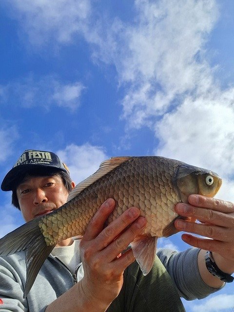 ■釣り方:バランスの底釣り(タナ50CM) ■竿:がまかつ がまへら 天輝 9尺 ■浮子:J-YGT 赤荻SP パイプ 9番 ■道糸:東レ 将鱗スーパー50 1.5号 ■ハリス:㊤:東レ 将鱗スーパー50 1号/27CM ㊦:東レ 将鱗スーパー50 1号/35CM ■ハリ:㊤㊦:がまかつ アスカ 10号 ■エサ:《ダンゴ》マルキユー ダンゴの底釣り芯華150+ダンゴの底釣り冬50+水110 を混ぜ合わせ固まったら軽くホグして基エサ完成。 手水で開き具合を調整しエサの大きさはパチンコ玉大サイズ。 《グルテン》マルキユー もちグル60+わたグル40+水110 をグルテン専用混ぜ棒で粉の状態で良く混ぜ合わせる。 水を入れたらグルテン専用混ぜ棒で同じ様に満遍なくしっかりと混ぜ合わせる。 その後数分放置し固まったらグルテン専用混ぜ棒でエアーを入れる様にホグして基エサ完成。 手水で開き具合を調整しエサの大きさはパチンコ玉大サイズ。 その他、ダンゴ/グルテンを1:1で混ぜ合わせたグルダンゴも使用。