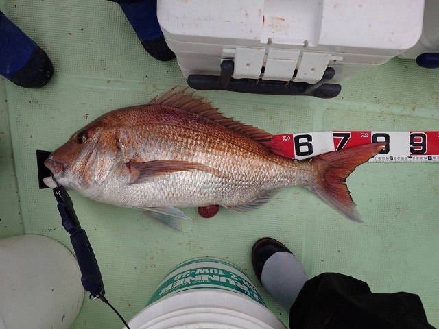 この日は良型サイズの真鯛のアタリが少なくボトムはほぼチャリコ中心で厳しい状況のなかで釣り上げた貴重な1匹だったようです!おめでとうございます(^^)/