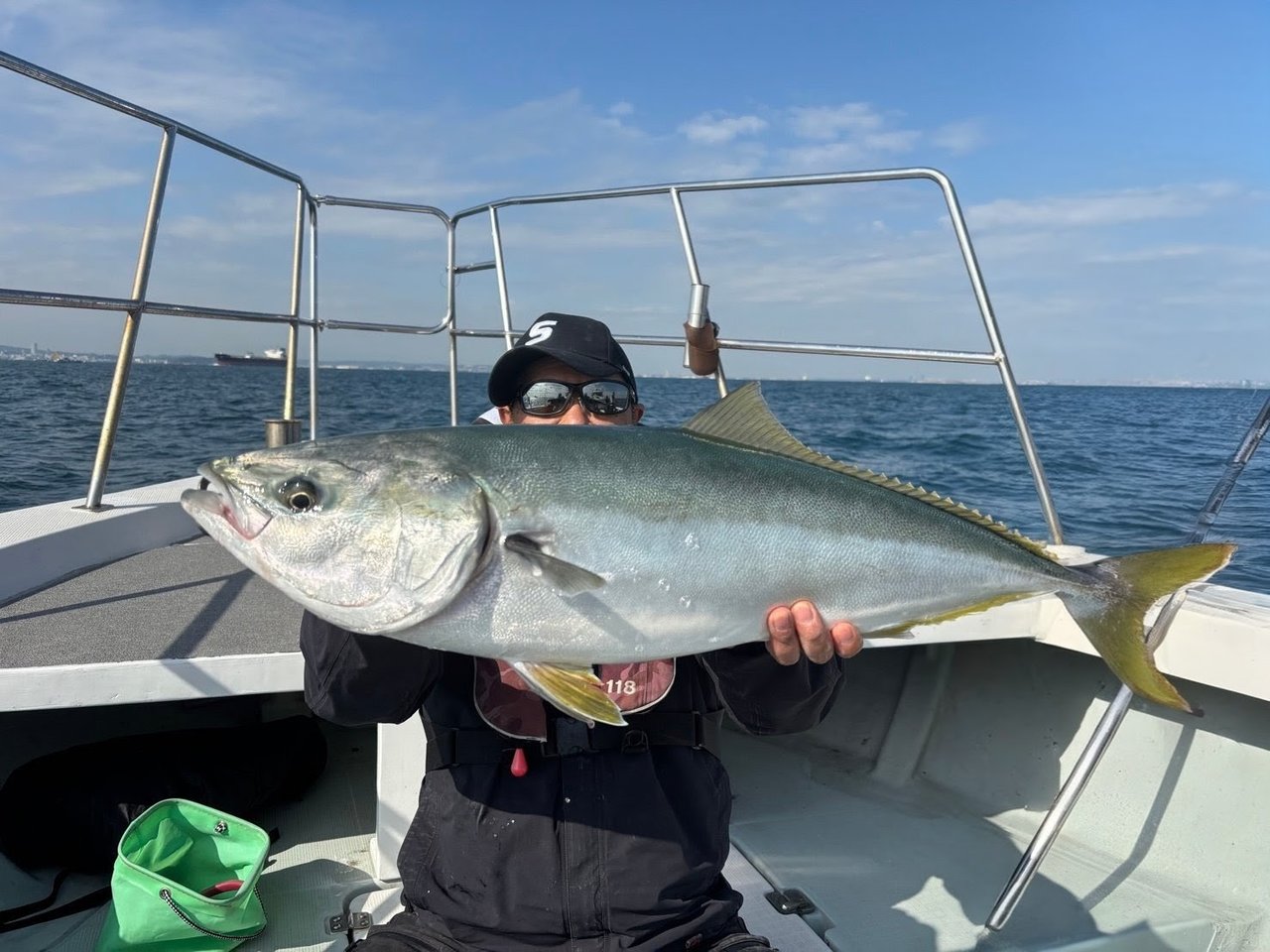 PE0.8号では出されるだけでロッドもMAXでどうにもならない状態になったが、ゆっくり巻き少しラインが横になり角度が変わったタイミングで勝負に出たら意外とあっさり浮いて来た。大きくゆっくり旋回させネットに入ったのは5kgを少し超えたワラサでした。