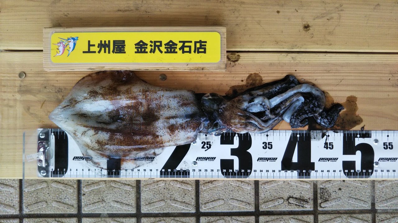し釣り開始。多少風がありましたが潮も緩くまずはイカメタル15号でスタートしました。ヤリイカ狙いで底を取り1投目でアタリが!幸先がイイと思いきや、メタルと同じ大きさのコウイカ・・・?気を取り直し釣りを再開、暗くなるにつれアタリが多くなりぽつぽつですが、ヤリイカ18~22㎝位とスルメイカ30㎝台が釣れてくれました。ほとんど底での釣果でしたので明日は筋肉痛の予感!次回の釣行では、もっと成長したヤリイカが見れそうです。