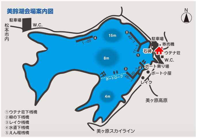 | 釣り場 | 美鈴湖 えん提桟橋 |