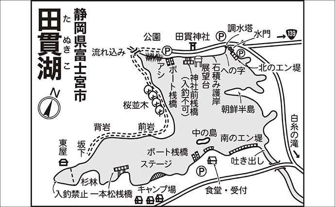 | 釣り場 | 田貫湖 北ボート桟橋 右側 |