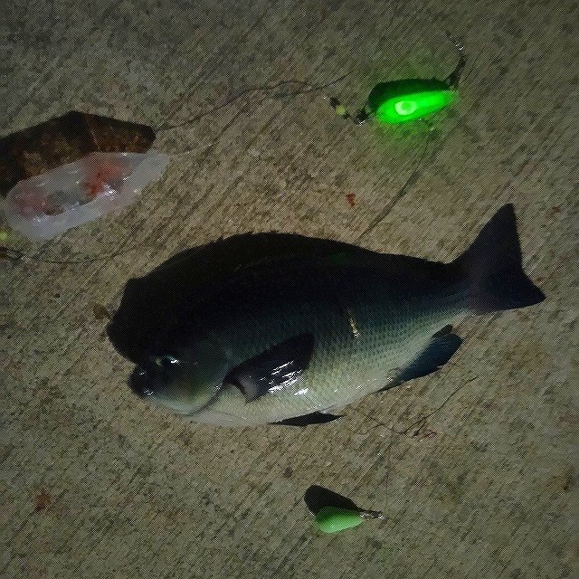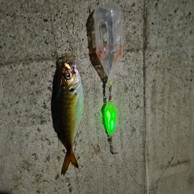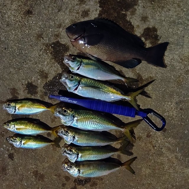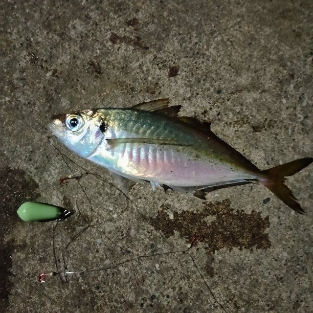 下げ潮が効きだした0時頃からアタリ始めて25㎝前後の幅広アジが!