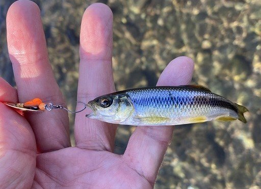 しばらくは「無」の時間が続きましたがファーストヒットはウグイ君。