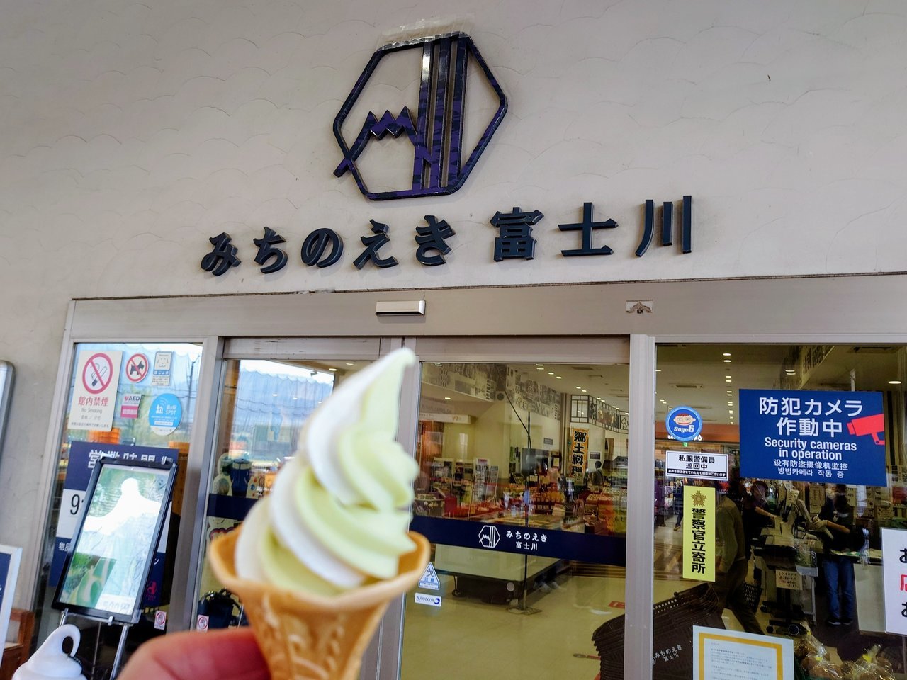 帰りは富士川SAでつけ麺とシャインマスカットソフト。
