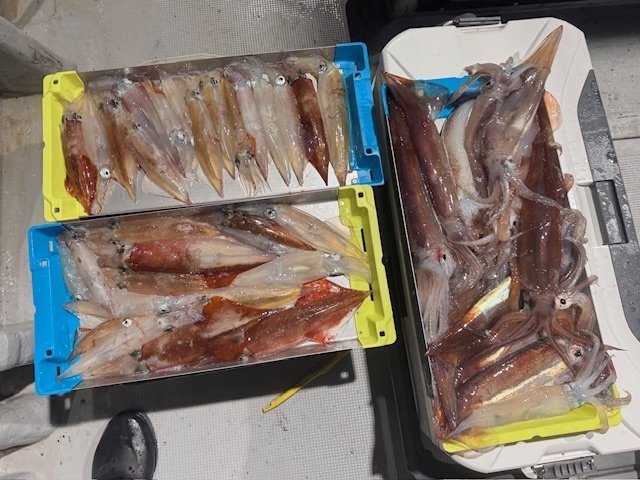 大船渡のイカ釣りに行って来ました、ヤリイカとスルメイカが混じりで釣れている様です。60mのポイントでスタート、まずはヤリイカを狙います。暗くなるとアタリが出始め釣れます、底がヤリイカで少し上げるとスルメが釣れます。自分はヤリイカのアタリが無い時だけスルメを狙いあとは終始、底付近でヤリイカを釣ります。ヤリイカもサイズが良くなってきました、11月12月ともっと大きくなりそうです。