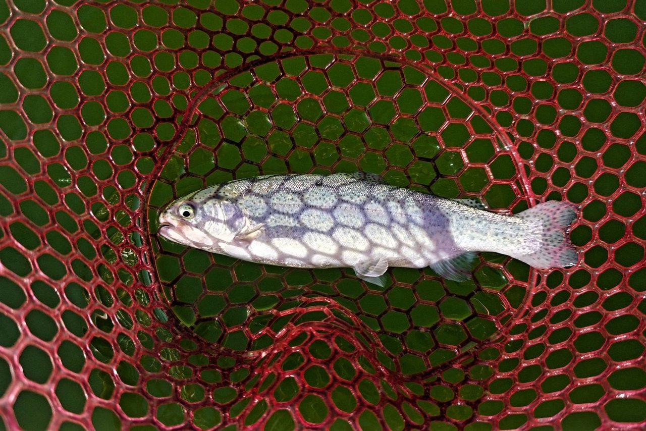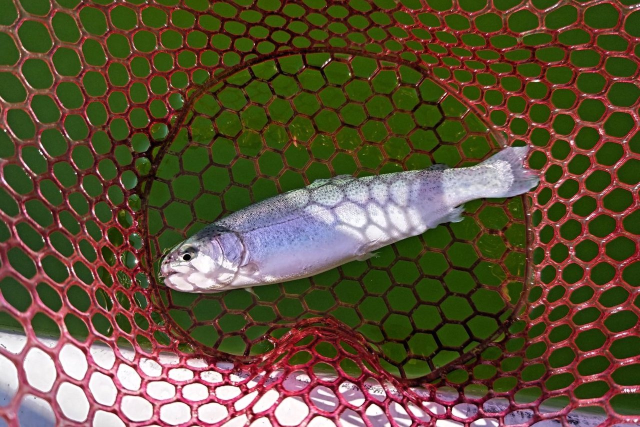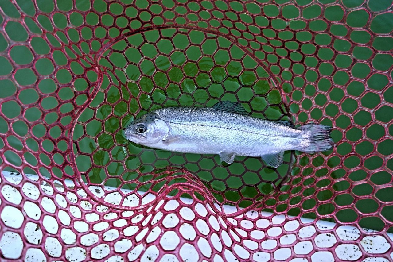 10月24日(金)にオープンした【多摩湖駅前フィッシングエリア】に行ってきました。午前中、所用があり珍しく午後からの3時間釣行です。今期はオープン当初から水色が緑がかっていて魚影が確認できません。いつもの様にバベルエース0.7gでスタート。ここの釣り場では自分の場合、普通のキャストで中央の壁に届くのがエースの0.7gなので多用しています。1投目、着水後巻きはじめ反応なし。2投目、ちょっと沈めて巻きはじめ反応なし。3投目、ボトム取ってから巻きはじめでコッとアタリからのキャッチ。無事プールトラウトの開幕です。その後も同じパターンでアタリますが、のらなかったり、バレたりで数が稼げません。特にバラシが多く、話によると「今期は塩焼きサイズでも食べて美味しい肉厚の魚を多く放流している」との事で、流れもあるせいか掛けたあとの引きが非常に強い魚が多くてバラシ多発でした(言い訳)。プールを1周して釣りしましたが、何処でも釣れましたので魚はある程度ばらけていて回遊のタイミングに合うと連続してアタる感じでした。次は31日(金)に彩サーモン等が放流予定です。