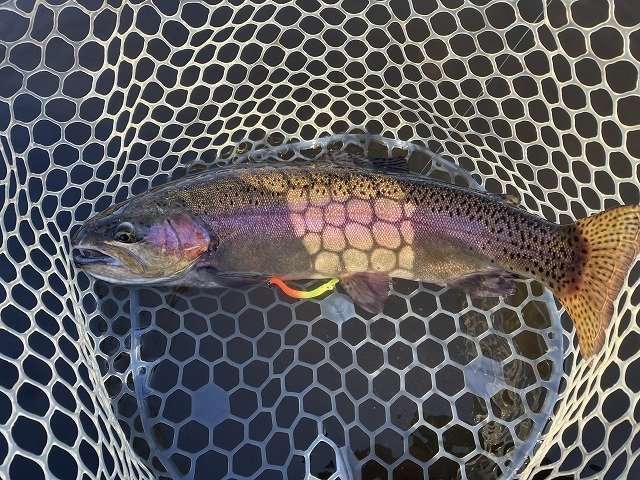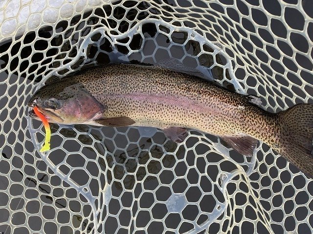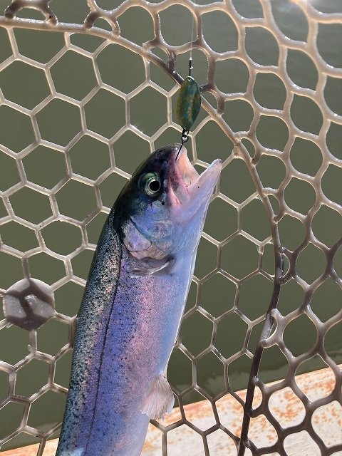 11月10日強風の午後2時間半釣行。久しぶりのブリゲードポンドなので受付の方にどこが釣れているか聞いたら昨日は川側が好調だったが、今日は風が駐車場側へ吹いているのでそちらの方がいいんじゃないかと。とりあえず前回好調だったスイッシャーで管理棟前からスタートして、途中クランクへ交換して池を2周しましたがそんなに甘く無く・・・管理棟前で岩に向けてスピンソニックをキャストすると待望のアタリが!!巻いて寄せて来てネットをさがしている時にバラシ・・・気を取り直して何回かキャストするも続かず。キモはブレードか?それとも違う要素か?再度スイッシャーに結び直して浅い所の岸沿いにキャストするとようやくヒット。が、これはスレ掛かり。ただ魚からの反応はあったので場所を変えて再度キャストすると明確なアタリがありようやくネットイン!!やはり駐車場側の方が魚影が濃かったみたいです。同じような感じで探っているとコツンというアタリがあり2匹目ゲット!!短時間でしたが満足のいく釣果でした!!まだ完全な冬パターンではなく、秋の名残を引きずっているような状況でした。まだまだ巻物いけますよ!!