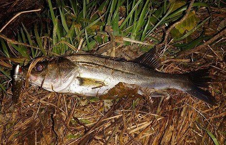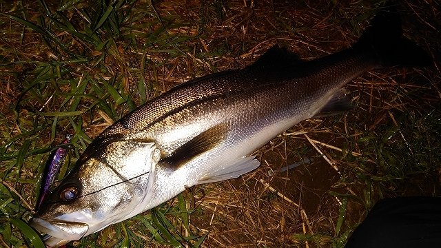 夜の三浦サーフへシーバス狙いに伊坂様から釣果報告を頂きました。ゴミが引っ掛かったのかと思いきや、何かラインを引っ張る重みが・・・