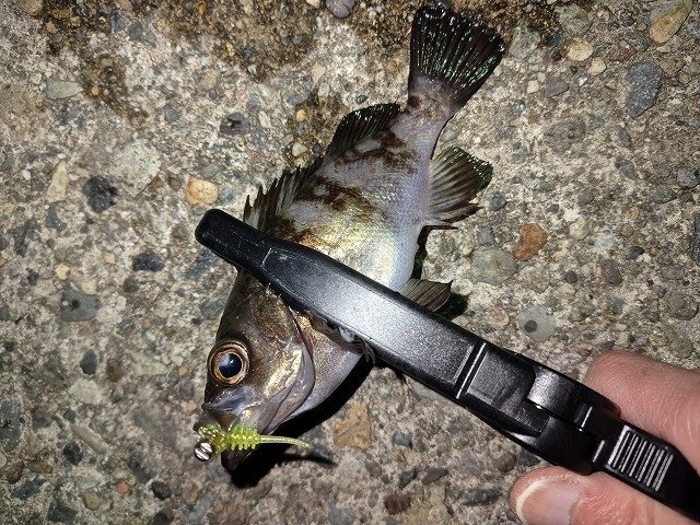 セイゴかと思うも走らないが良い引きを見せ上がってきたのは14㎝程のメバル