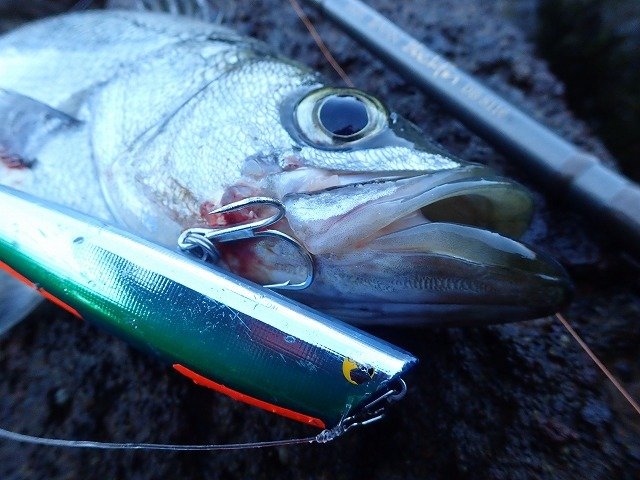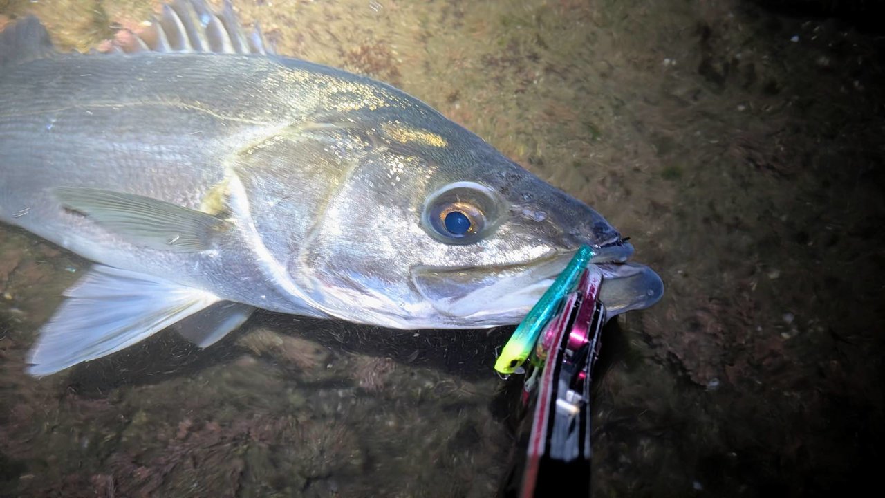 というか、コノシロのスレなのか、シーバスが掛かっているか、曖昧過ぎる感じでフッキングが甘いのも理由か。最終的に3ヒット1キャッチで終了。