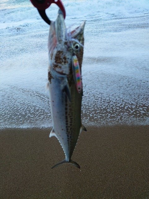 予想よりもやや波が高い状況でしたがサゴシが釣れてくれました。シラスを吐いたのでまだマイクロベイトパターン継続中のようです。