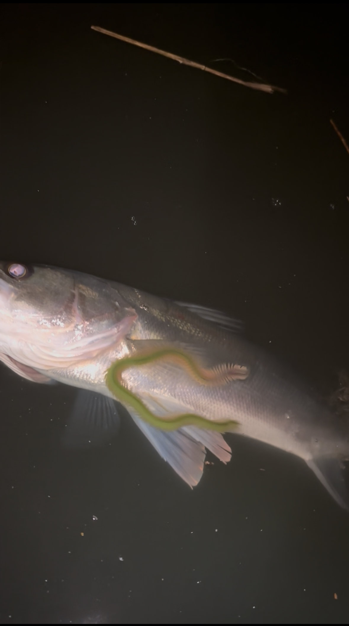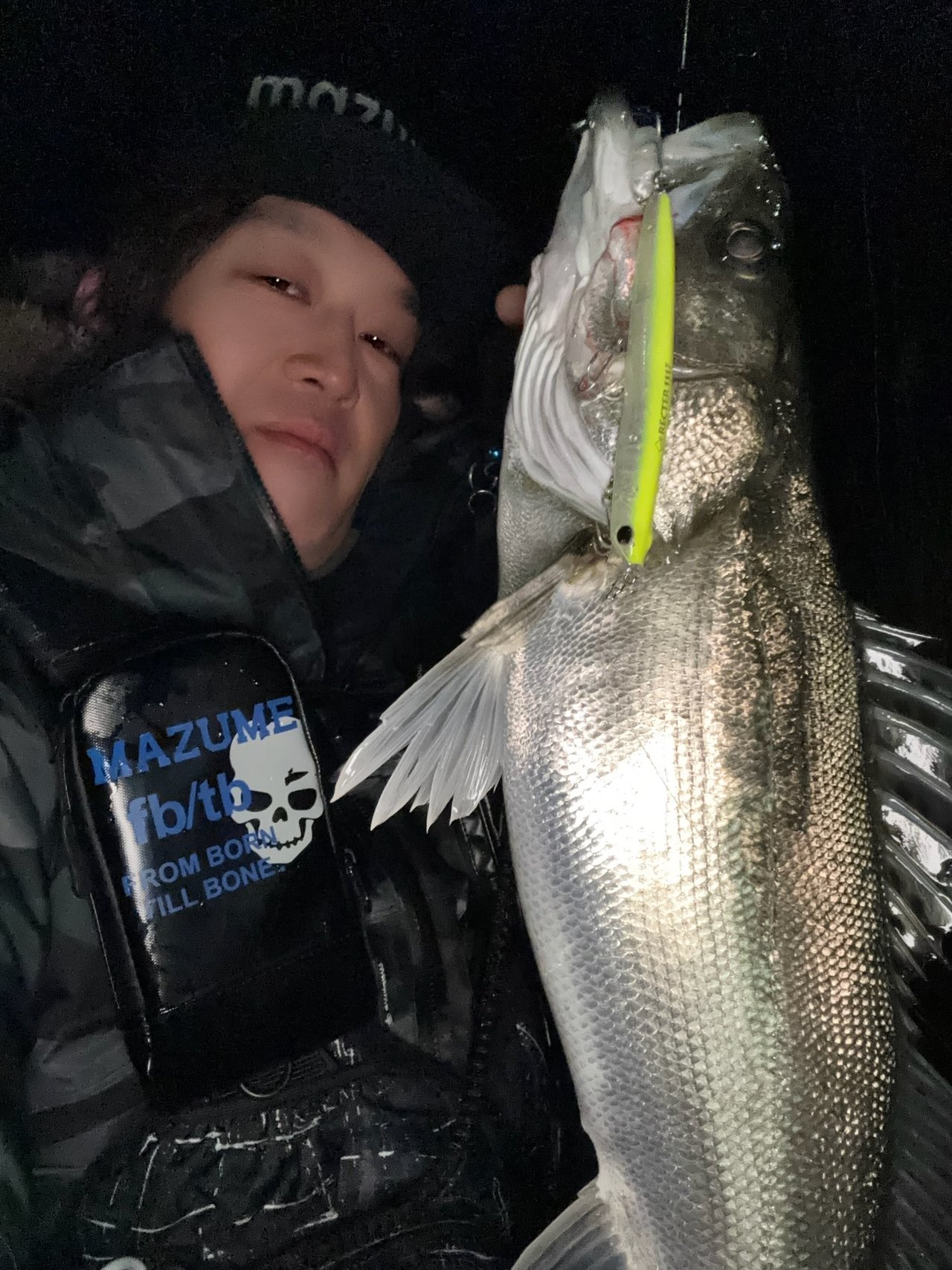 琵琶湖ブラックバスで初釣りです。北西風強風の予報が現地は無風ベタ凪。明るい時間は雰囲気も無く終了。凪いでいるので早めにスピニングタックルに持ち替えました。年末年始の寒波でワカサギも取れている為、夜のジグヘッドスイミングに期待満々です。しかしポイント選択ミスか暗くなってもバイトが遠い状況。セクシーインパクト5.8のオリカラWMPBでいろいろ探っているうちに遠投後のフォールでわずかなバイト。食い込む感じも無くそのまま我慢して巻いていると手前のかけ上がり付近まできたときにひったくりバイトで2026年初バスをキャッチ!ワームの後ろを付いてきてくれていたようです。セオリー通りに今日からラインをナイロン8lbにして冬パターンでネチネチ狙ってみます。