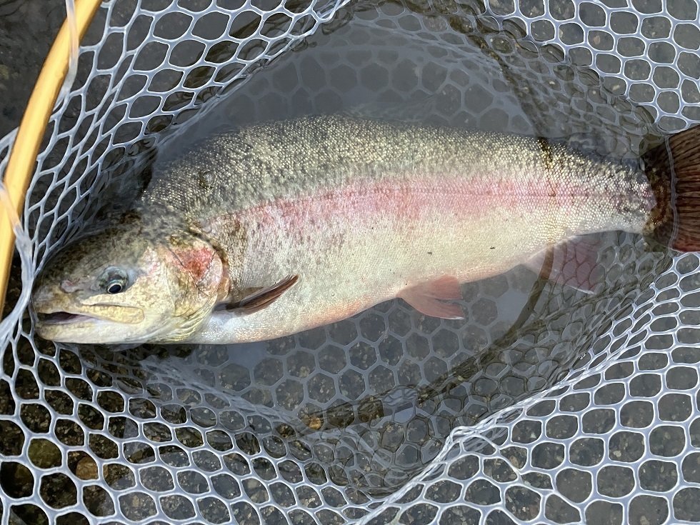 午後から五頭FPへ行ってきました。スタートは午後1時。活性の高いレギュラーサイズがいてくれたおかげで、開始から3時頃まではシャローレンジでルアーチェンジをしながらポツポツ追加といった状況。3時以降はレンジを下げたり、ボトムを探ったり色々試してみましたが一気にペースダウン…。4時過ぎには、手の感覚もなくなり、ガイドも凍りつき出したので、早めに退散しました。前半で20尾キャッチも30尾に届きませんでした…。