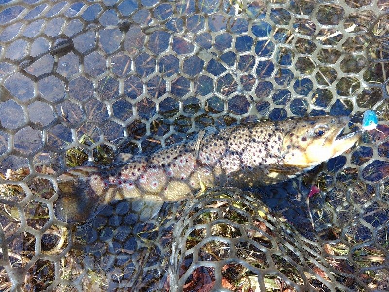 6号池に移動してプラチナムS0.5gを使ってボトムで何匹か追加したところで風が出てきて釣りずらくなったので1号池に移動。1号池は深さがあまりなく飛距離の必要ないのでルアーが良く見えサイトで楽しめました。その後あちこち移動しながらポツポツと拾い釣りして15時前に終了しました。